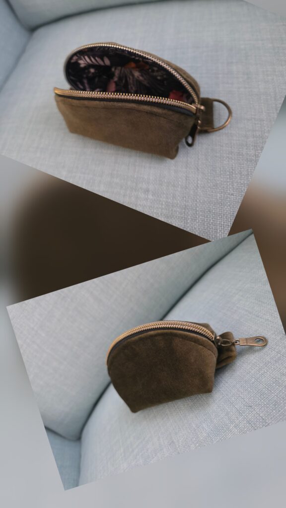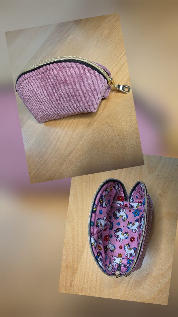 🌙✨ Porte-monnaie demi-lune en velours rose poudré 🌸, avec une doublure surprise… des licornes toutes mignonnes qui ne demandent qu’à briller 🦄